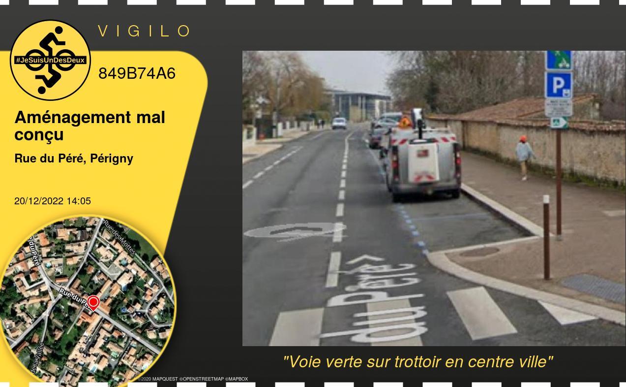 | Rue du Péré, Périgny | Voie verte sur trottoir en centre ville | Photo - Observations similaires |