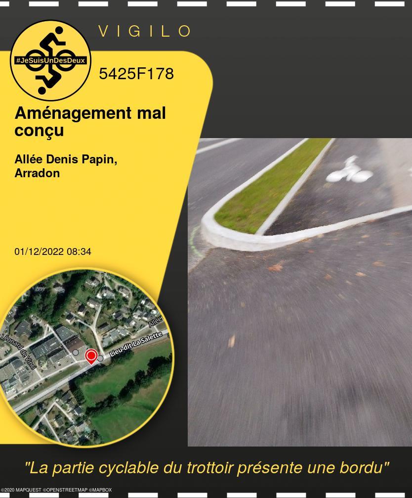 La partie cyclable du trottoir présente une bordu |