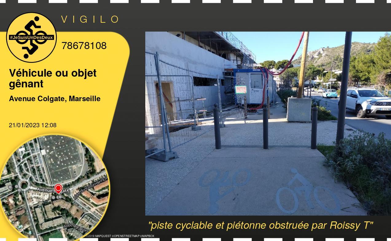piste cyclable et piétonne obstruée par Roissy T |