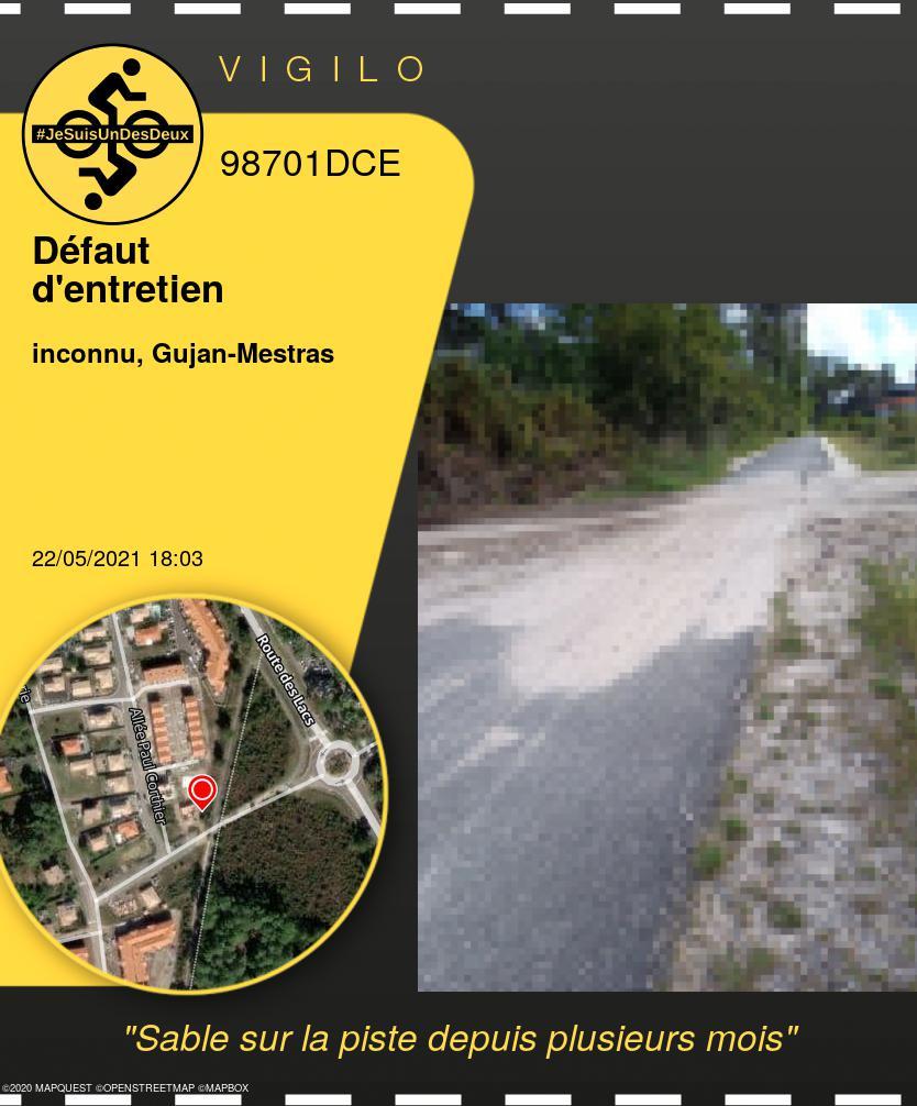 inconnu, Gujan-Mestras | Sable sur la piste depuis plusieurs mois | Photo - Observations similaires |