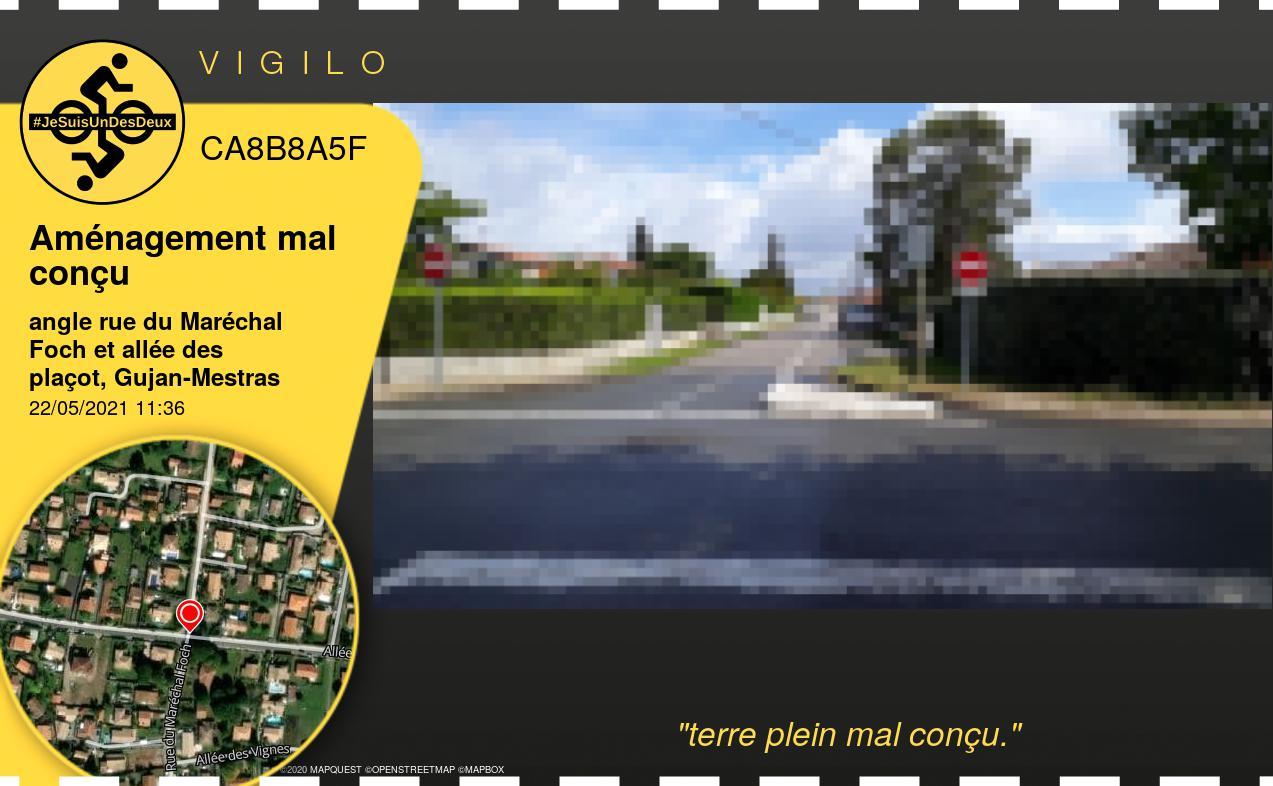 angle rue du Maréchal Foch et allée des plaçot, Gujan-Mestras | terre plein mal conçu. | Photo - Observations similaires |